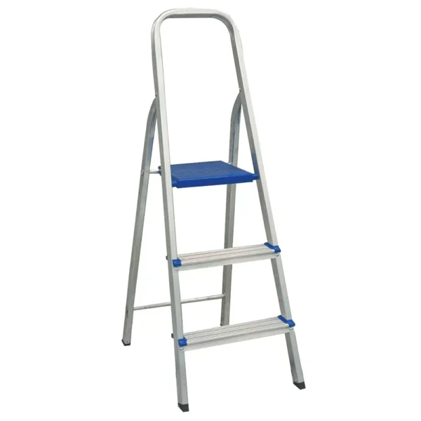 A escada multiuso é fabricada em alumínio de alta qualidade, estrutura compacta, fácil de transportar, super resistência de 150 kg, não enferruja, pés de borracha não deslizam e proporcionam mais estabilidade e segurança, dobradiças de aço, travas de segurança.