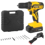 Furadeira e Parafusadeira à Bateria 12V bivolt pfv 012 Com Kit Brocas, Bits e Trena VONDERReferência: 60.01.012.000 APRESENTAÇÃO: Indicada para soltar e apertar parafusos de até 6 mm de diâmetro e fazer furos em madeiras ou metais. Tempo de carregamento da bateria: 3 a 5 horas. Possui regulagem para 18 posições de torque e 1 posição para perfuração, LED para melhor visibilidade do local de trabalho, cabo com revestimento emborrachado, proporcionando maior conforto ao operador, bateria de íons de lítio que confere alta eficiência de operação, indicador de carga da bateria, além de carregador bivolt automático com tensão de entrada de 100 V – 240 V. Sistema de reversão Reversível acompanha: 1 Parafusadeira/furadeira pfv 012.1 maleta.1 bateria de 12V.1 fonte bivolt automática.6 brocas de aço rápido (1,5 mm, 2,5 mm, 3,0 mm, 4,0 mm, 5,0 mm e 6,0 mm).6 bits (2 fendas (5 mm e 6 mm), 2 phillips (PH1 e PH2) e 2 pozidrive (PZ1 e PZ2)).1 soquete magnético encaixe de 1/4 pol.1 Trena. detalhes TÉCNICOS: Tensão da bateria: 12,0V. Tipo de bateria: Bateria de íons de lítio. Capacidade do mandril: 3/8 pol – 10 mm. Tipo de mandril: Aperto rápido. Torque máximo/ força de aperto: 23 N. M (2,3 kgf. M). Capacidade máxima de perfuração em aço: 10,0 mm. Capacidade máxima de perfuração em madeira: 16,0 mm. Capacidade de furação no concreto: N/A. Tipo de velocidade: Variável. Rotação da Furadeira/parafusadeira: 0 – 650 rpm. Sistema de reversão: Reversível. Impactos por minuto (ipm): N/A. Tensão do carregador de bateria: 100 V – 240 V – Bivolt automático. Frequência (Hz): 50 Hz/60 Hz. Segue norma: abnt nbr iec 60745-1, abnt nbr iec 60745-2-1 e abnt nbr iec 60745-2-2. Massa aproximada: 1,09 kg. Marca: VonderGarantia – E (cdc): Garantia legal: 90 dias + Garantia contratual: 9 meses* Imagens meramente ilustrativas. * A marca da trena pode variar conforme disponibilidade do estoque.